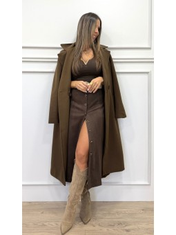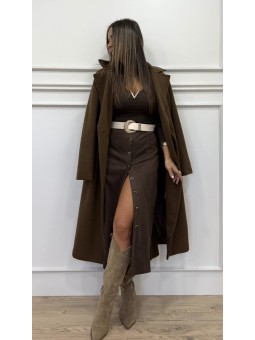 143714 Abrigo de cuello solapa y manga larga acabada con trabilla y botón. Bolsillos delanteros de vivo. Cierre frontal cruzado con botones. Composición: 100% poliester Talla única: Hombros:39 cm Sisa: 47cm Largo:110cm