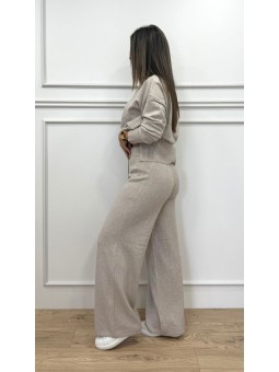 143906 Conjunto de punto formado por jersey de medio cuello y manga larga y pantalón con goma en la cintura y pata ancha. Composición:100%polyester TALLA ÚNICA: JERSEY: Hombro:57cm Sisa:58cm Largo+-70cm PANTALÓN: Cintura:34cm Cadera:49cm Largo pierna interior+-78cm