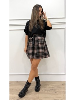 143728 Falda de cuadros con cinturilla elástica. Detalle tablas y aplique lazo en delantero. Composición:90%polyester 8%viscosa 2%spandex TALLA ÚNICA: Cintura:34cm Largo+-44cm