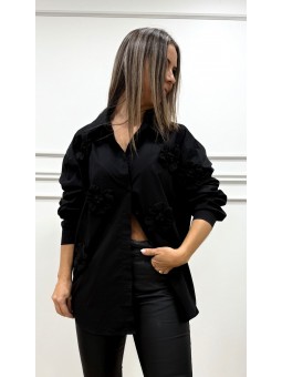 143682 Camisa cuello solapa y manga larga acabada en puño. Cierre frontal con botones. Detalle de flores en relieve. Composición:100%algodón TALLA ÚNICA: Hombro:52cm Sisa:61cm Largo+-72cm