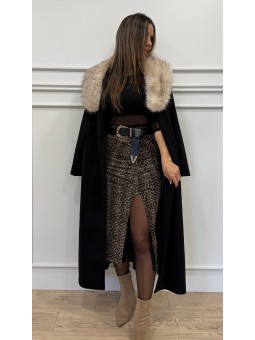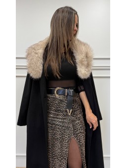 144235 Cazadora de cuello con pelo y manga larga acabada con cremallera y trabillas en hombros. Bolsillos delanteros con cierre de cremallera. Bajo acabado con cinturón y hebilla. Cierre frontal cruzado con cremallera metálica. Composición:94%pòlyester 6%elastano TallaHombro (cm)Sisa...