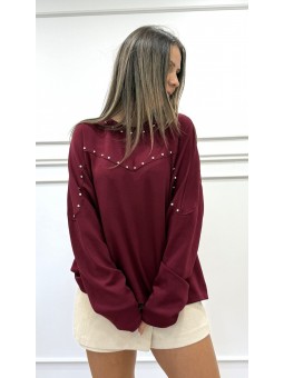 143750 Sudadera cuello redondo y manga larga. Detalle de taxas en delantero.  Composición: 55%polyester 39%viscosa 6%elastano TALLA ÚNICA: Sisa:62cm Largo+- 58cm