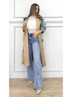 143871 Abrigo de cuello solapa y manga larga acabada con trabilla y botón. Cierre frontal cruzado con botones. Espalda con botones dorados Composición: 100% poliester Talla Única: Hombros: 38cm Sisa: 52cm Largo: +-96cm
