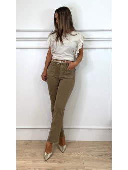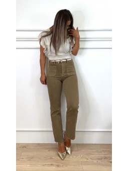 143476 Pantalón con bolsillos cuadrados delanteros Composición: 98% algodón 2% elastano Tallas : 34: Cintura:30cm Cadera:40cm 36: Cintura:32cm Cadera:42cm 38: Cintura:34cm Cadera:44cm 40: Cintura:36cm Cadera:46cm 42: Cintura:38cm Cadera:48cm Largo pierna interior+-71cm