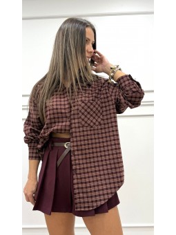 143921 Camisa de felpa con cuello solapa y manga larga acabada en puño. Cierre frontal con botones. Composición:75%algodón 20%polyester 5%altre fibre TALLA ÚNICA: Hombro:57cm Sisa:60cm Largo+-72cm