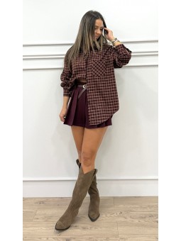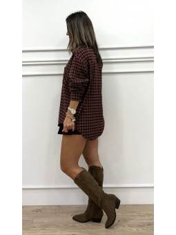 143927 Camisa de felpa con cuello solapa y manga larga acabada en puño. Cierre frontal con botones. Composición:75%algodón 20%polyester 5%altre fibre TALLA ÚNICA: Hombro:57cm Sisa:60cm Largo+-72cm