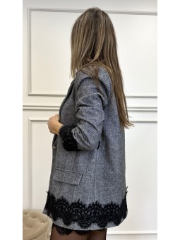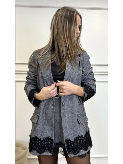 143818 Blazer de cuello solapa y escote pico. Manga larga con hombreras. Bolsillos con solapa en delantero. Forro interior de cuadros. Cierre frontal con botón. Composición:95%polyester 5%elastano TALLA ÚNICA: Hombro:39cm Sisa:53cm Largo+-72cm