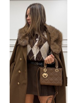 144449 Chaleco de pelo combinado con polipiel. Manga sisa. Bolsillos delanteros. Detalle de cinturón. Cierre frontal con botones. Composición:80%acrylic 20%polyester TallaHombro (cm)Sisa (cm)Largo (cm) SM 36 46 76 LXL 38 48 78