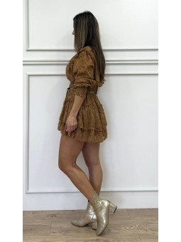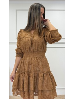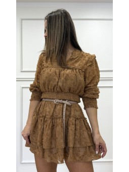 144002 Vestido corto con brillos de escote pico pronunciado y manga. Goma en la cintura. Bajo acabado en volantes. Forro interior. Composición:100%polyester TALLAS: XS: Hombro:36cm Sisa:45cm Cintura:32cm S: Hombro:37cm Sisa:46cm Cintura:33cm M: Hombro:38cm Sisa:48cm Cintura:34cm L: Hombro:39cm...