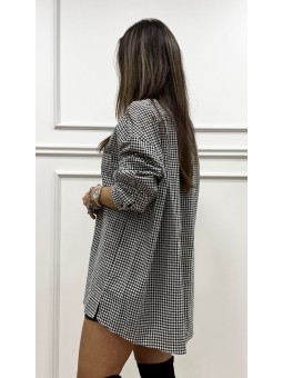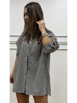 144371 Camisa de manga larga y cuello solapa. Cierre frontal con botones. Composición:50%algodón 50%polyester TallaHombro (cm)Sisa (cm)Largo (cm) TU 58 66 72
