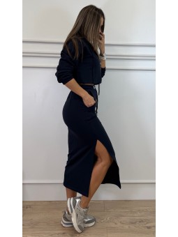 143994 Conjunto sport compuesto por sudadera de cremallera con capucha y detalle de cordones en espalda y pantalón campana. Composición:93%polyester 7%elastano TALLAS: SM: Hombro:37cm Sisa:36cm Cintura:34cm Cadera:41cm LXL: Hombro:38cm Sisa:37cm Cintura:36cm Cadera:43cm Largo pierna interior+-77cm