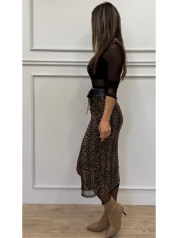 144476 Falda midi de tull estampado animal print. Fruncido en delantero. Goma en la cintura. Composición:95%viscosa 5%elastano Talla Cintura (cm) Cadera (cm) Largo (cm) XS 32 36 84 S 33 37 84 M 34 39 84 L 35 41 84 XL 36 43 84 XXL 37 45 84