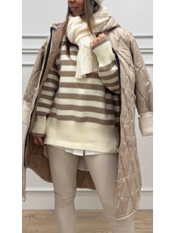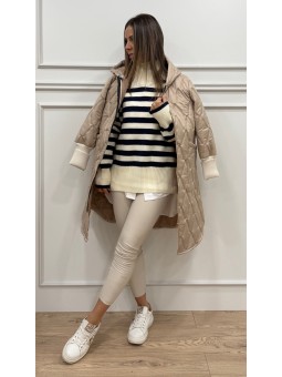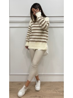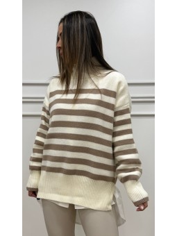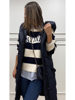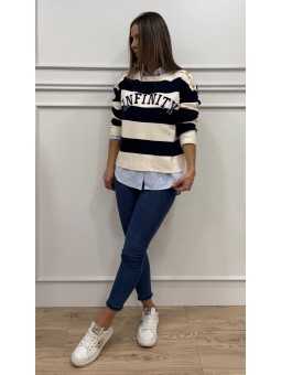 144208 Jersey de cuello redondo. Estampado de rayas con letras en delantero.