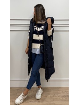 144378 Cazadora de cuello solapa con pelo y manga larga. Tejido combinado con lentejuelas. Cierre frontal con botones. Composición:100%polyester TallaHombro(cm)Sisa (cm)Largo (cm) TU 44 59 70