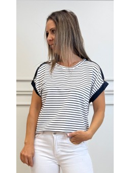143100 Camiseta de manga corta con botones en hombro y cuello redondo. Estampado de rayas horizontales. Composición:95%viscosa 5%elastano TALLA ÚNICA: Sisa:53cm Largo+-60cm