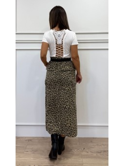 143429 Camiseta manga corta, escote V con encaje delante y en la vertical de la parte de atrás Composición: 95%algodón 5% elastano Talla Única: Hombros: 37cm Sisa: 39cm Largo: +-54cm