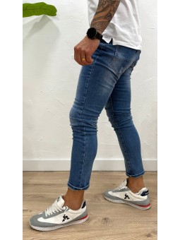142864 Jeans skinny fit. Cinco bolsillos. Efecto gastado. Cierre frontal con cremallera y botón. Composición:63%algodón 2%rayon 33%polyester 2%elastano TALLAS: 38: Cintura:36.5cm Cadera:44cm 39: Cintura:37cm Cadera:45cm 40: Cintura:38cm Cadera:46cm 41: Cintura:38.5cm Cadera:47cm 42: Cintura:39cm...