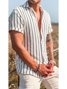 143305 Camisa cuello solapa y manga corta. Cierre frontal de botonadura. Composición:100%algodón TALLAS: S: Hombro:48cm Sisa:48cm M: Hombro:50cm Sisa:50cm L: Hombro:52cm Sisa:52cm XL: Hombro:54cm Sisa:54cm XXL: Hombro:56cm Sisa:56cm Largo+-74cm