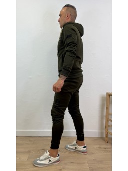 143035 Chándal de dos piezas. Chaqueta con capucha y cremallera central. Pantalón con goma en la cintura, cremallera en los bolsillos y puño. Composición:80%algodón 20%polyester TALLAS: S: Hombro:46cm Sisa:48cm Cintura:34cm M: Hombro:47cm Sisa:50cm Cintura:35cm L: Hombro:48cm Sisa:52cm...