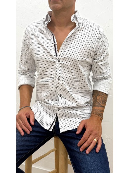 Camisa cuello solapa y manga larga acabada en puño con botón. Cierre frontal de botonadura.