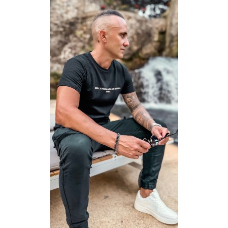 Camiseta de manga corta y cuello redondo. Estampado de letras frontal.