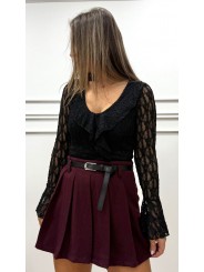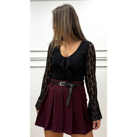 Camiseta encaje volante negra