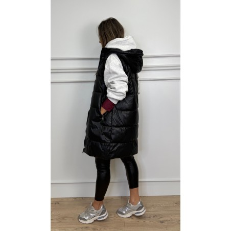 Chaleco de cuello subido con capucha ajustable con cordones y manga sisa. Bolsillos delanteros con cremallera. Cierre frontal con cremallera.
