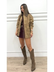 1 more image Chaqueta pelo marrón 49,95 € Marrón S M L Añadir al carrito Parka brillos hombros militar 69,95 € MILITAR TU Añadir al carrito 1 more image Sobrecamisa flecos... 49,95 € Marrón SM ML Añadir al carrito Chaqueta antelina tostada 69,95 € TOSTADO TU Añadir al carrito 143757 Chaqueta de Antelina de cuello solapa en polipiel y manga larga. Bolsillos de solapa en delantero. Cierre frontal con cremallera oculta por solapa. Composición:90%polyester 10%elastano TALLA ÚNICA: Hombro:50cm Sisa:55cm Largo+-68cm