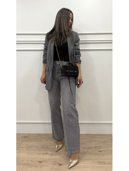 Blazer de cuello solapa y escote pico. Manga larga con hombreras. Bolsillos con solapa en delantero. Forro interior de cuadros. Cierre frontal con botón.