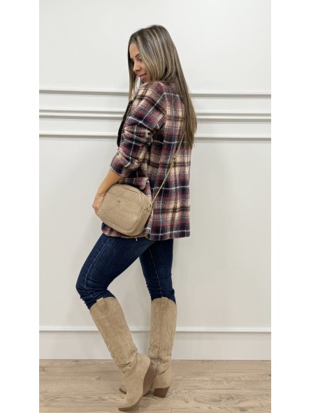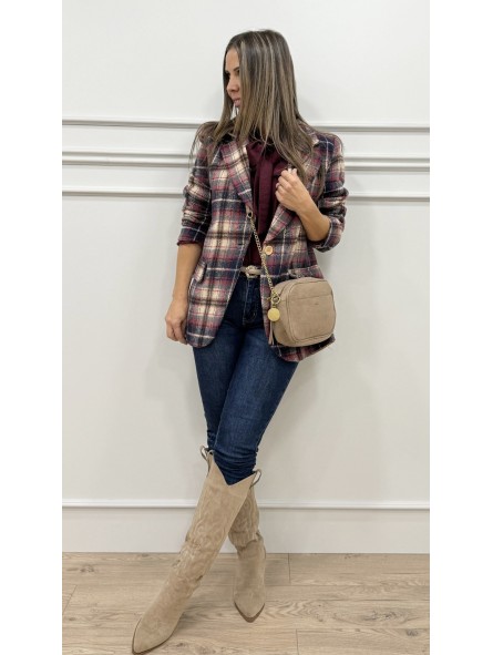 Blazer de cuello solapa y manga larga con hombreras acabada en puño. Bolsillos con solapa delanteros. Cierre frontal con un botón.