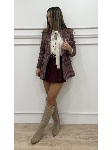 Blazer de cuello solapa y manga larga con hombreras acabada en puño. Bolsillos con solapa delanteros. Cierre frontal con un botón.