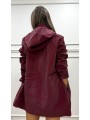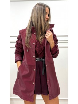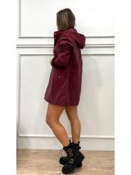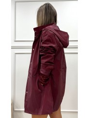 Chubasquero largo, con capucha ajustable con cordones elásticos y stoppers. Manga larga. Bolsillos en vivo. Cierre frontal con botones a presión.