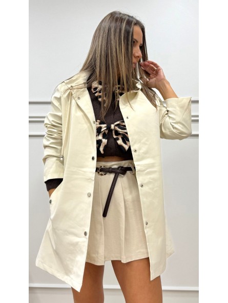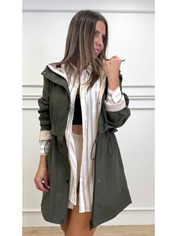 Chubasquero largo, con capucha ajustable con cordones elásticos y stoppers. Manga larga. Bolsillos en vivo. Cierre frontal con botones a presión.