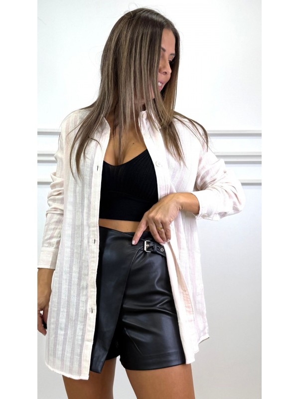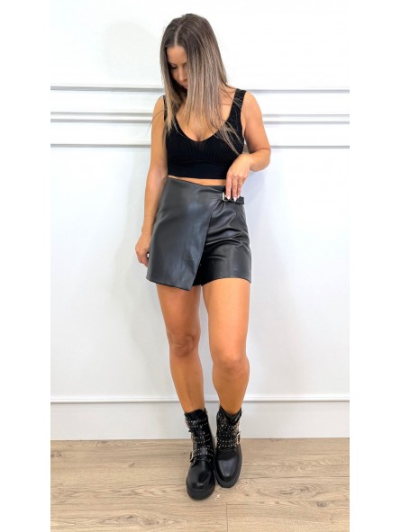 Short de polipiel con hebilla. Cierre con cremallera oculta en costura lateral.