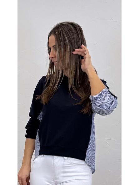 Sudadera combinada rayas marino