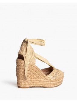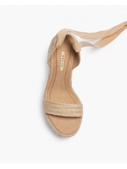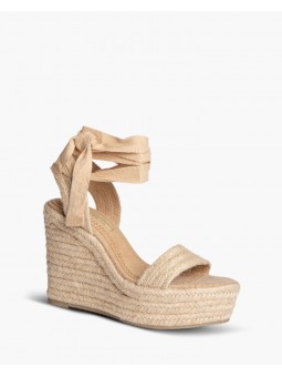 142994 Plataforma tipo valenciana, con cuña de yute. Corte trenzado.Cierre mediante lazo atado al tobillo.Altura del tacón 10 cm.altura de la plataforma 3 cm.