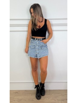 143425 Falda pantalón de tiro alto con bolsillos de plastrón delante. Cierre frontal con botones. Composición: 70% algodón 28% poliester 2% elastano 34: Cintura:32cm Cadera:41cm 36: Cintura:34cm Cadera:43cm M: Cintura:36cm Cadera:45cm L: Cintura:38cm Cadera:47cm XL: Cintura:40cm Cadera:49cm...