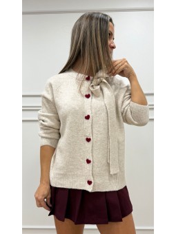 143980 Chaqueta de cuello redondo y manga larga. Cierre frontal con botones en forma de corazón. Composición:38% recicle polyester 30%acrylic 20%polyester 10%lana 2%elastano TALLAS: Sisa:58cm Largo+-58cm