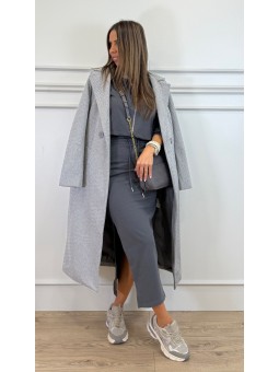 ARTÍCULO EN PREVENTA 143998 Trench de cuello solapa y manga larga de polipeil. Detalle de acabados con trabillas. Bolsillos delanteros de vivo. Bajo con abertura en espalda. Cierre frontal cruzado con botones y cinturón del mismo tejido. Composición:85%algodón 15%acrilic TALLA ÚNICA: Sisa:57cm...