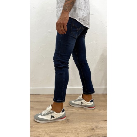Skinny con cinco bolsillos. Cierre frontal con cremallera y botón.