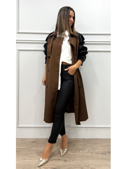 Jeans de polipiel con tiro alto y cinco bolsillos. Cierre frontal con cremallera y botón metálico.