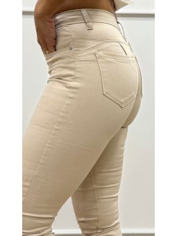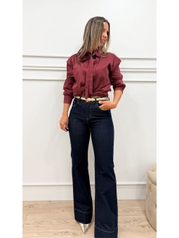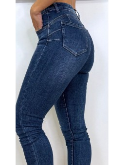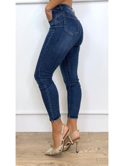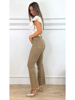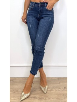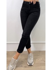 Jeans de tiro alto con cinco bolsillos. Cierre frontal con cremallera y botón.