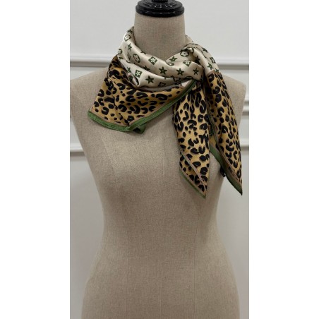 Pañuelo combinado leopardo verde