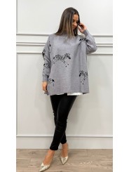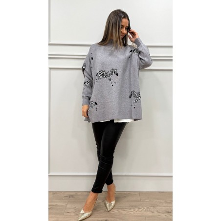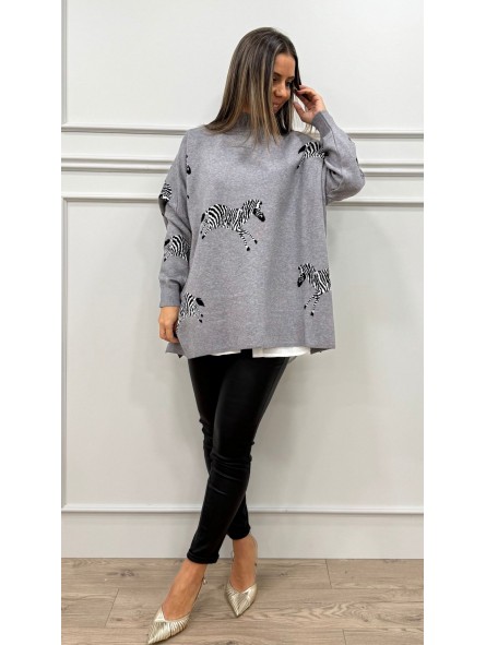 Jersey amplio de cuello subido y manga larga. Estampado de zebra.