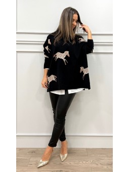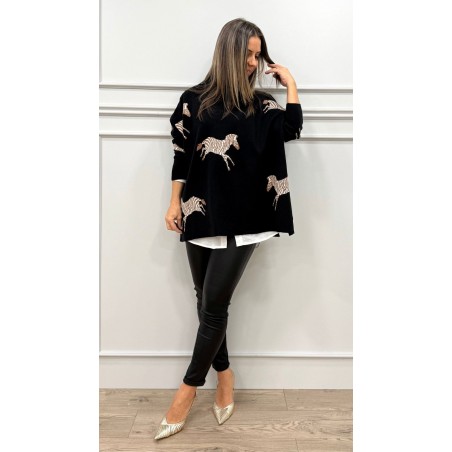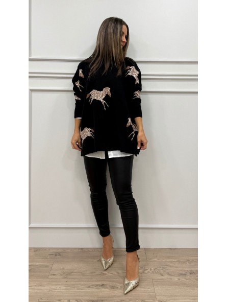 Jersey amplio de cuello subido y manga larga. Estampado de zebra.