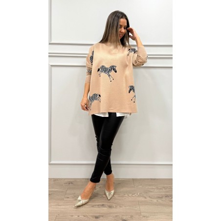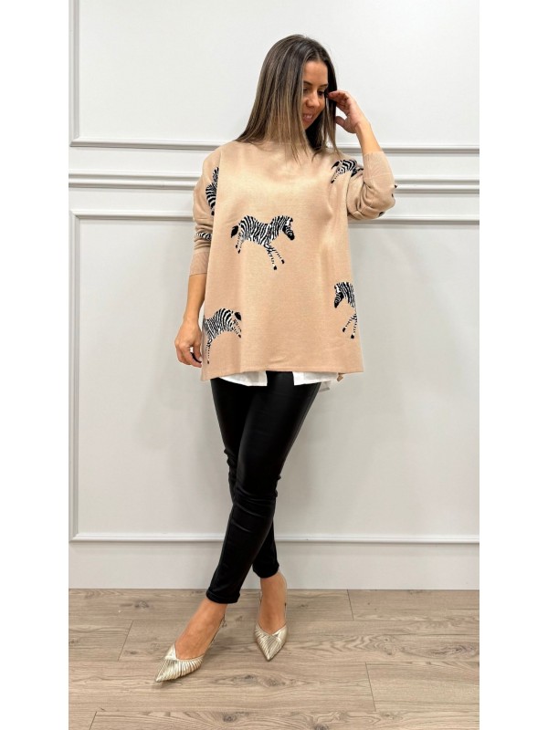 Jersey amplio de cuello subido y manga larga. Estampado de zebra.