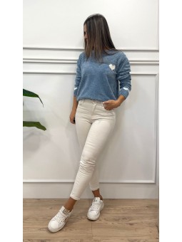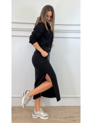 Sudadera con capucha ajustable con cordones y manga larga. Acabados en rib. Detalle de lentejuelas plata en el interior de la capucha.