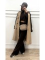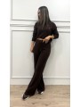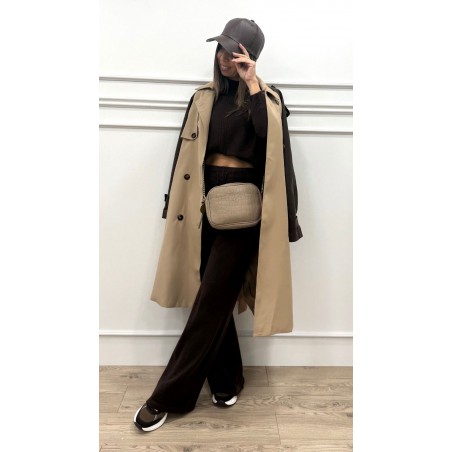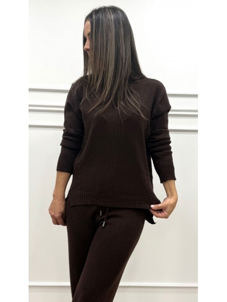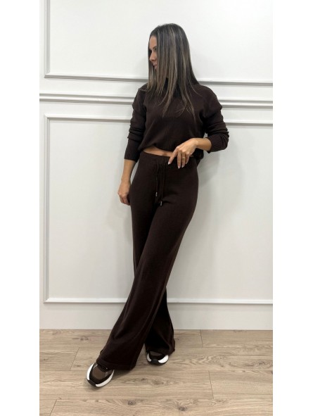 Conjunto de punto formado por jersey de medio cuello y manga larga y pantalón con goma en la cintura y pata ancha.