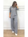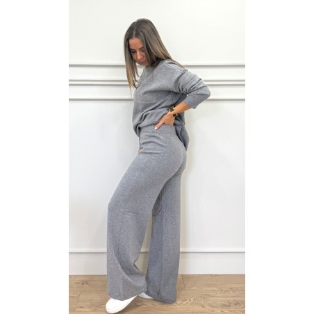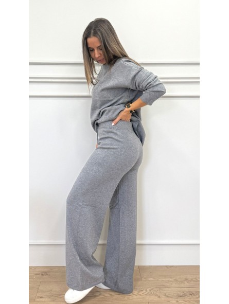 Conjunto de punto formado por jersey de medio cuello y manga larga y pantalón con goma en la cintura y pata ancha.